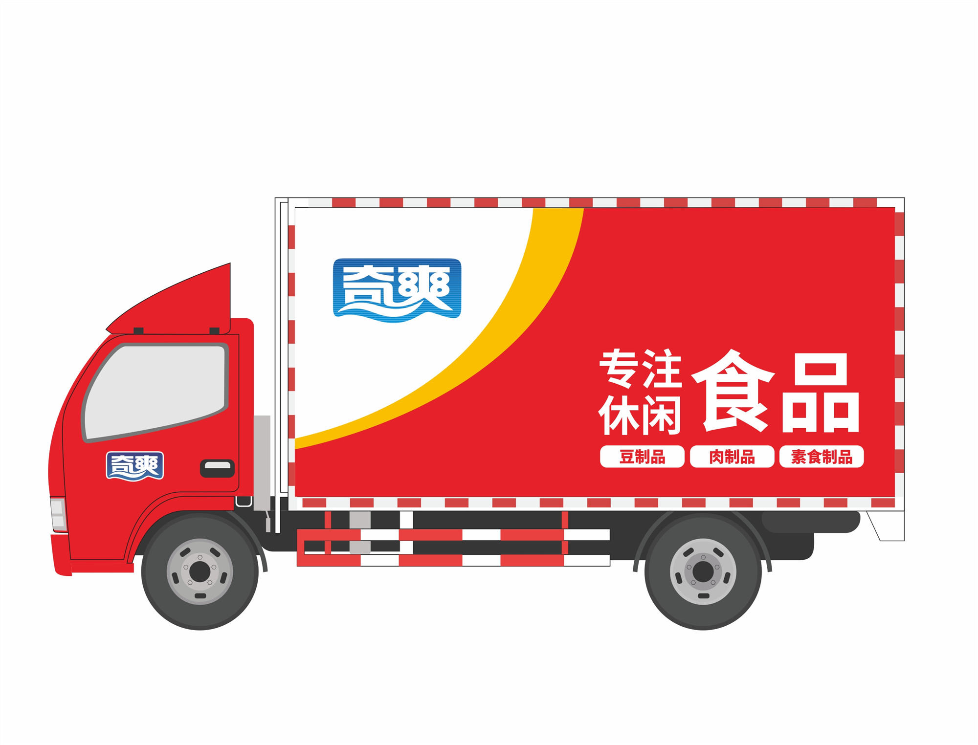重庆车身广告设计制作公司-重庆天贝车身广告为奇爽食品制作的瓦楞板货车广告,通过“食品级安全材质+强视觉冲击设计+场景化信息传递”,将货车转化为“移动的食品体验馆”,既满足食品运输的功能性需求,又高效传递品牌价值与产品卖点,是中小食品企业提升区域知名度、拉动终端消费的高性价比传播方案。